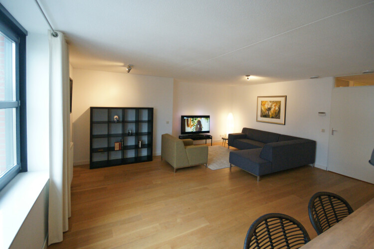 De woonkamer ligt aan de Van Berchenstraat, is zeer goed geïsoleerd en dus heerlijk rustig. De luxe open keuken is voorzien van een oven, magnetron, groot gasfornuis, vaatwasser, keukengerei en een stijlvolle Smeg koelkast.