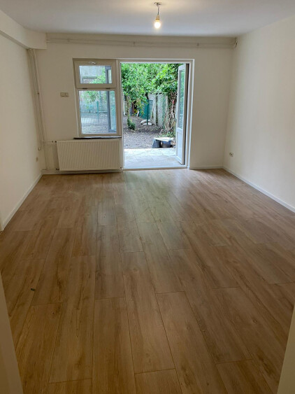 De tuin heeft een betegelde terras van 15m2 en onbewerkt grond voor eigen gebruik en zelf in te richting naar wens. Totale tuinoppervlakte is ongeveer 60m2.