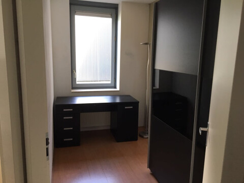 Dit appartement heeft een lichte woonkamer en twee slaapkamers waarvan momenteel één kamer als studeerkamer wordt gebruikt.